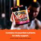 - Creatine Monohydrate + Essential Vitamins (D, C, B, E)