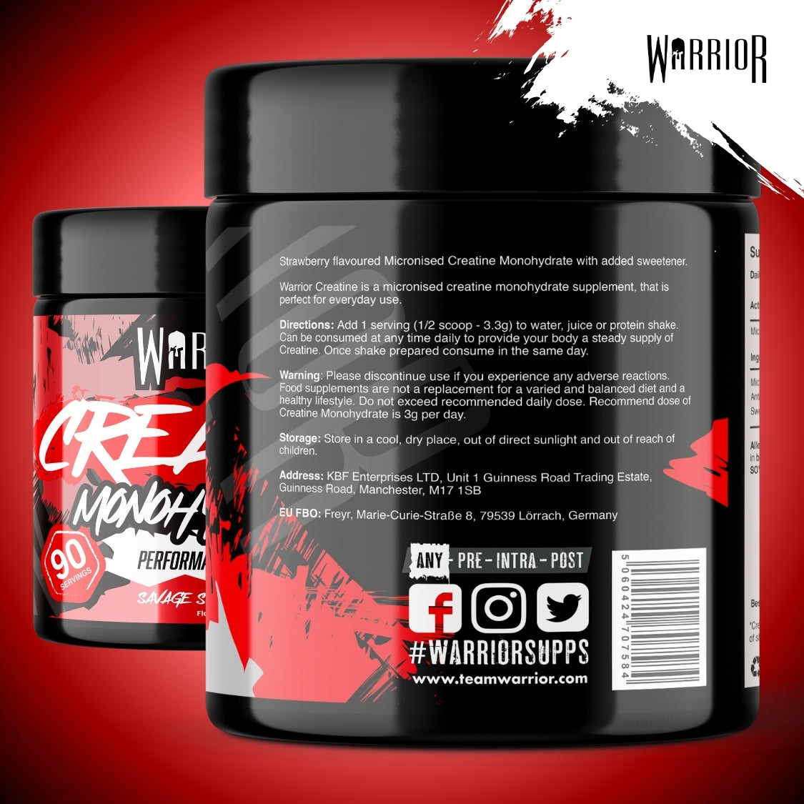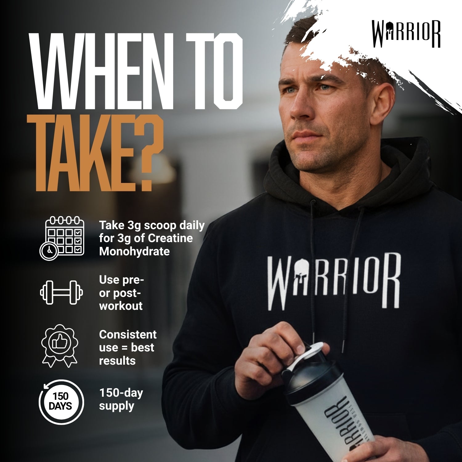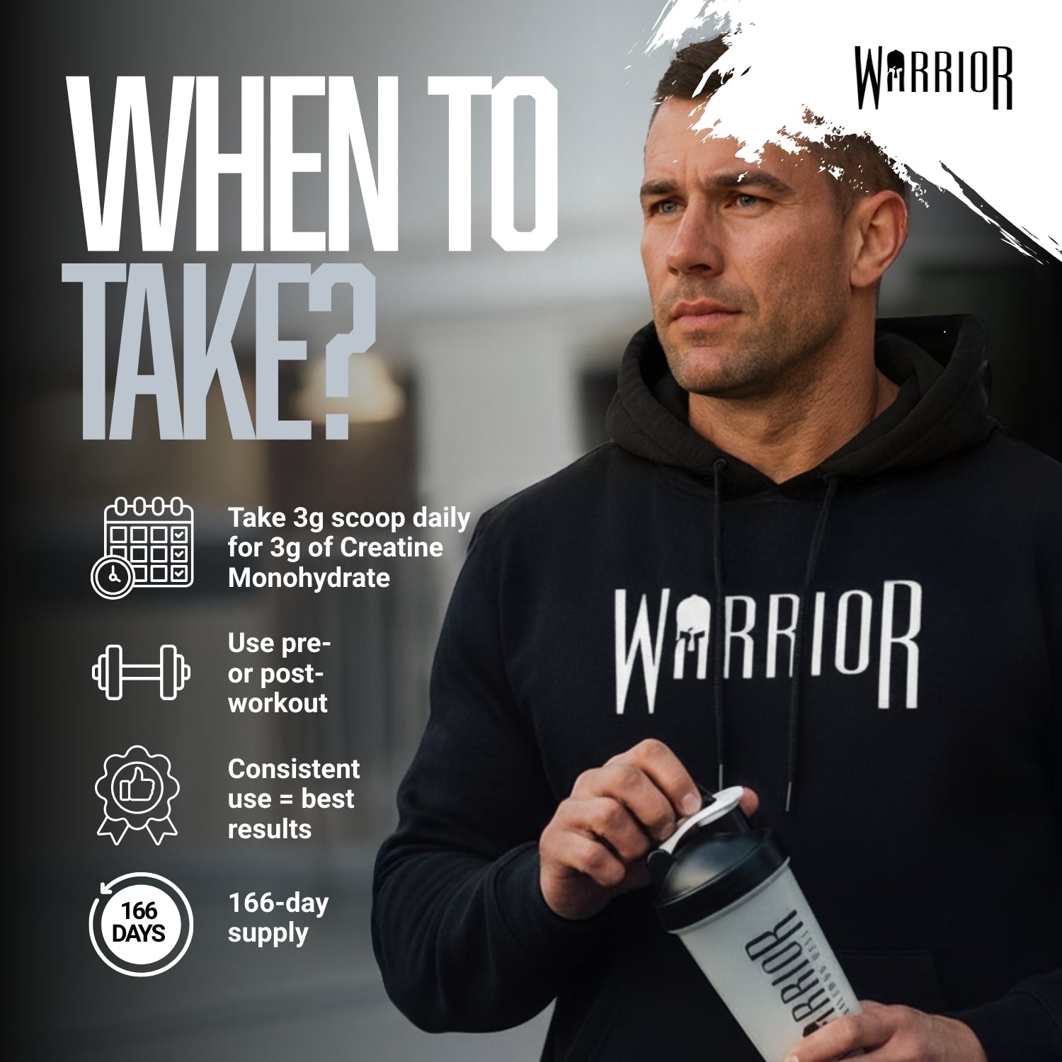Pure strength starts with pure Creatine. Warrior Creatine Monohydrate delivers ultra-premium, research-backed power.